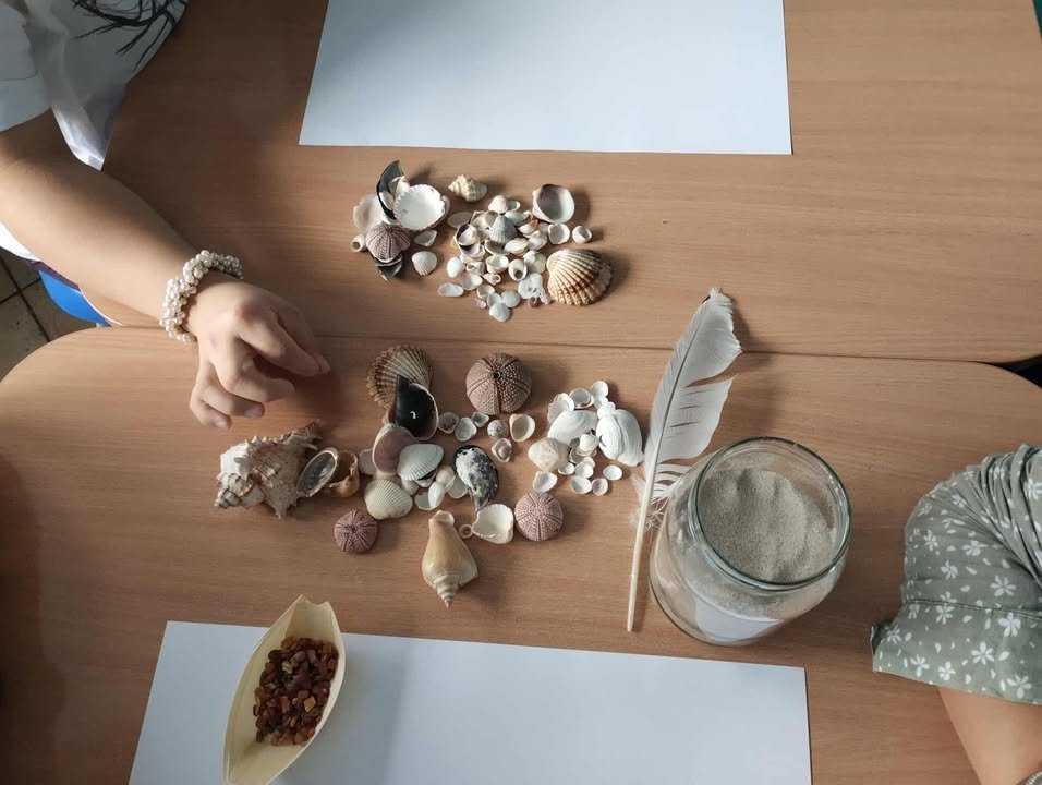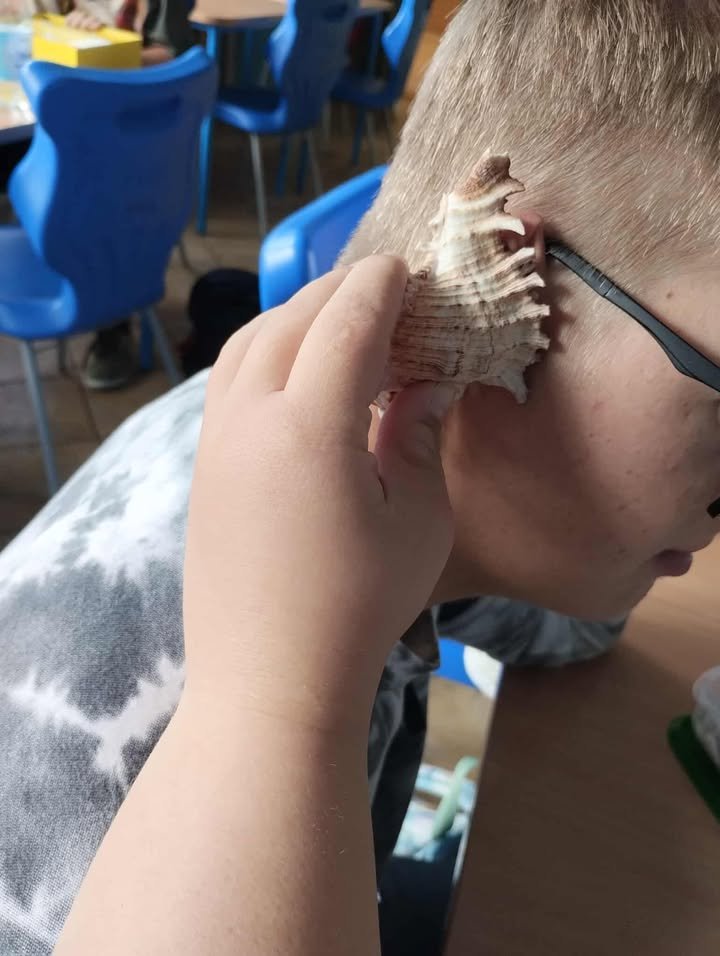 Nasza świetlica bierze udział w Ogólnopolskim Projekcie Edukacyjnym "Sensoryczna Podróż po Polsce". Na naszych pierwszych zajęciach wybraliśmy się w podróż nad morze. Słuchaliśmy szumu morza, dotykaliśmy piasku, muszelek, bursztynów a na zakończenie stworzyliśmy bardzo ciekawą prace plastyczną.