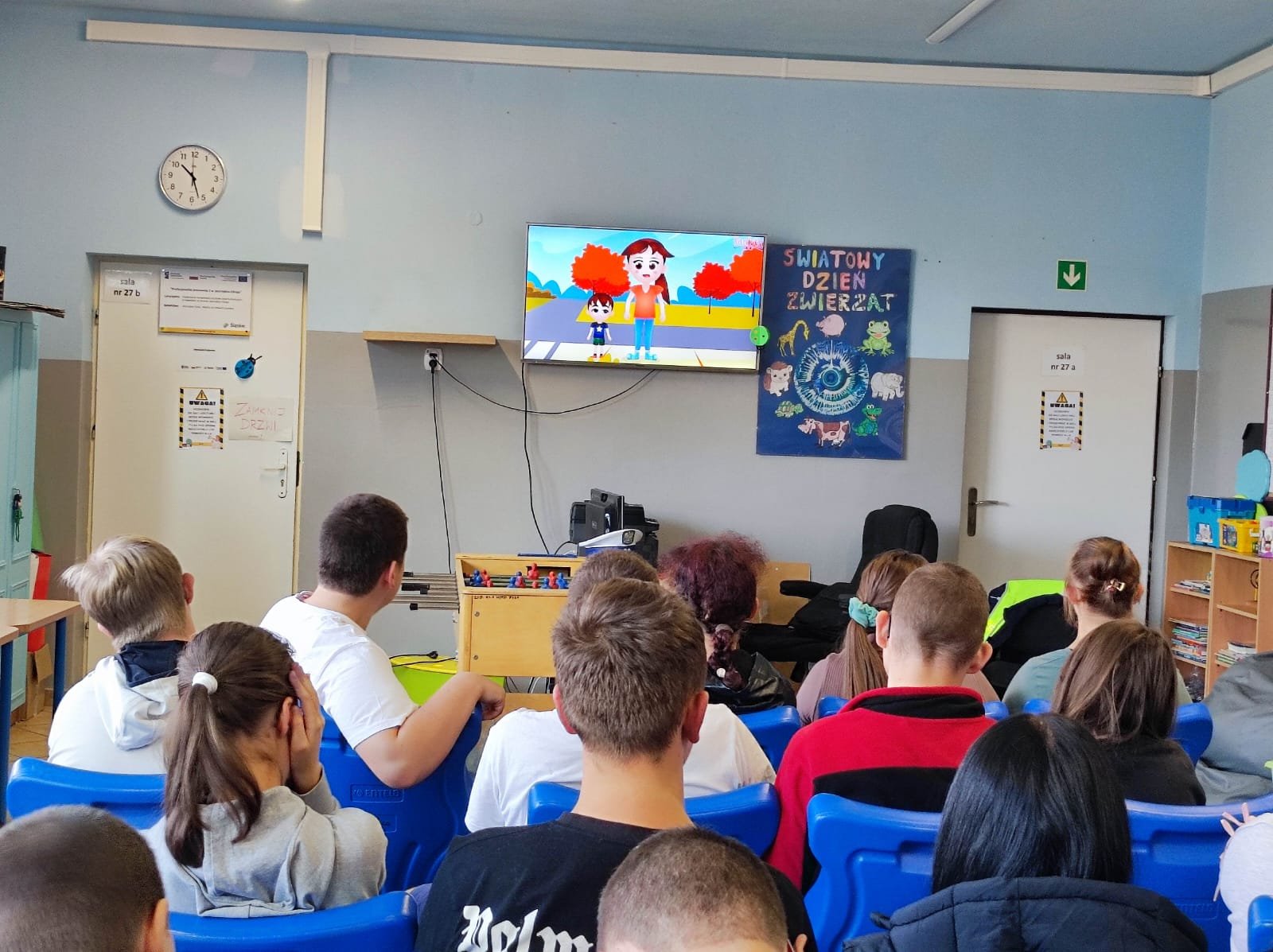 W ramach udziału naszej szkoły w Ogólnopolskim Konkursie „Odblaskowa Szkoła” świetlica szkolna zorganizowała spotkanie z funkcjonariuszami z wydziału ruchu drogowego Komendy Miejskiej Policji. Panowie policjanci przypomnieli uczniom zasady bezpiecznego zachowania się pieszych na drodze a także w podróży, jak również zasady bezpiecznego poruszania się na rowerze czy hulajnodze.