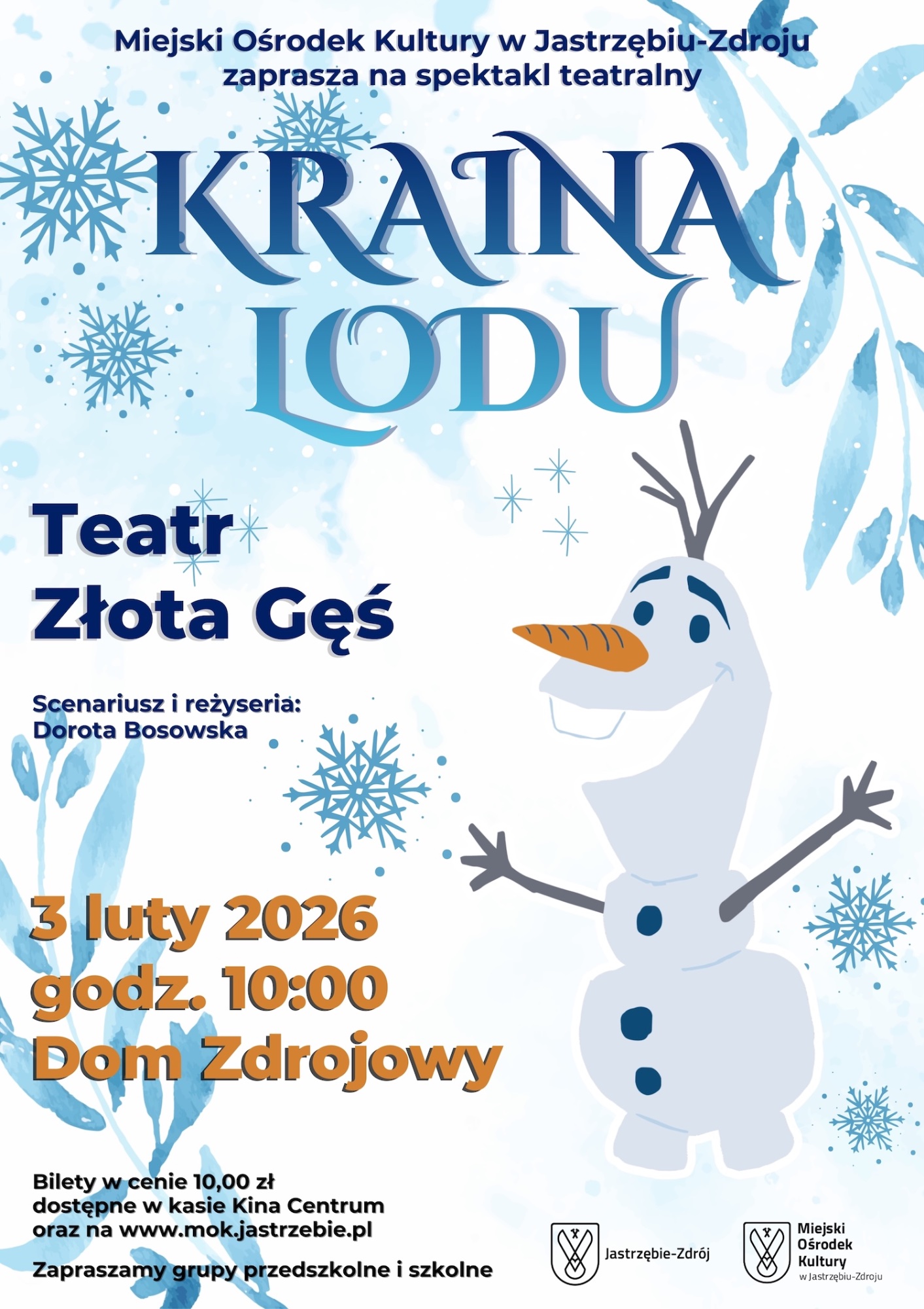 3 lutego 2026 uczniowie szkoły przysposabiającej do pracy mieli okazję obejrzeć w Domu Zdrojowym premierę spektaklu „Kraina Lodu” w wykonaniu grupy teatralnej „Złota Gęś”. Młodzi aktorzy w barwnej, pełnej muzyki i emocji opowieści przenieśli widzów do świata lodowych królestw, przyjaźni i siły rodzinnych więzi.
