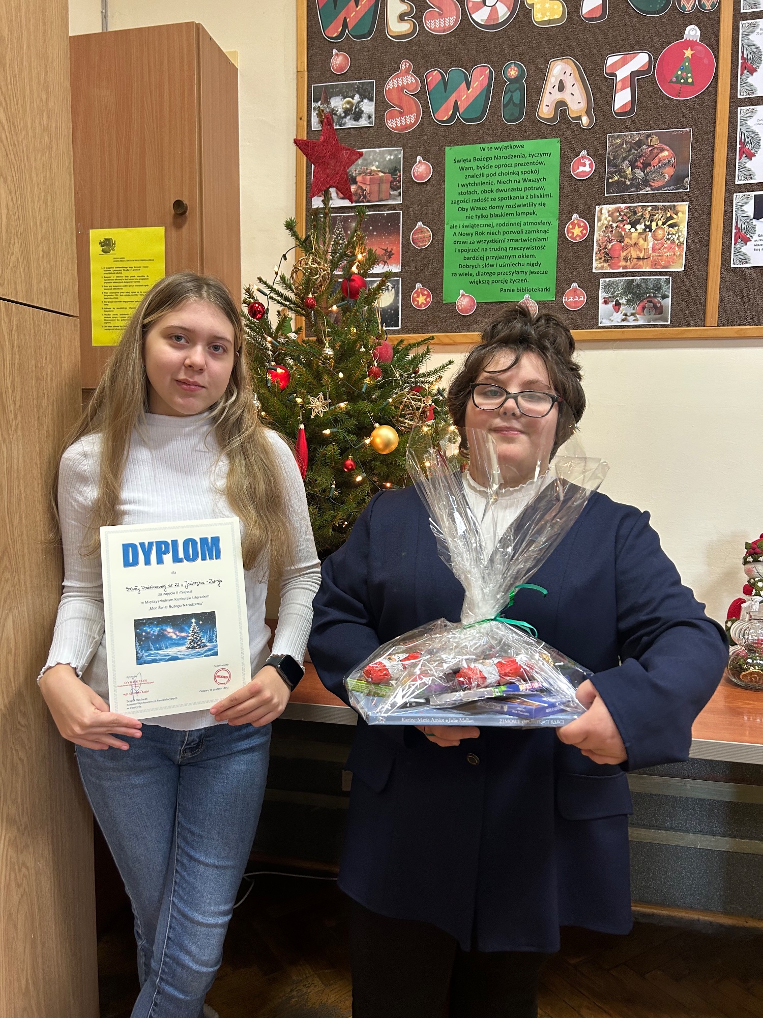 10.12.25 Paulina Krężołek i Anna Berezińska wzięły udział w międzyszkolnym konkursie literackim „Moc Świąt Bożego Narodzenia”, zorganizowanym przez Zespół Placówek Szkolno-Wychowawczo-Rewalidacyjnych w Cieszynie. W ramach wydarzenia uczestnicy mierzyli się z różnorodnymi zadaniami sprawdzającymi znajomość, takich utworów jak: Choinka L. J. Kerna, Opowieść wigilijna czy wybrane fragmenty Dzieci z Bullerbyn. Całość przebiegała w przyjaznej atmosferze, a organizatorzy zadbali również o poczęstunek. Nasze uczennice wykazały się bardzo dobrą znajomością lektur i zdobyły zasłużone drugie miejsce. Po zakończeniu rywalizacji, korzystając ze sprzyjającej pogody, udaliśmy się na cieszyński rynek , aby zobaczyć Jarmark Cieszyński oraz podziwiać świąteczne dekoracje. Spacer był miłym uzupełnieniem całego wyjazdu. Wszyscy uczestnicy wracali zadowoleni, bogatsi o nagrody i nowe doświadczenia.