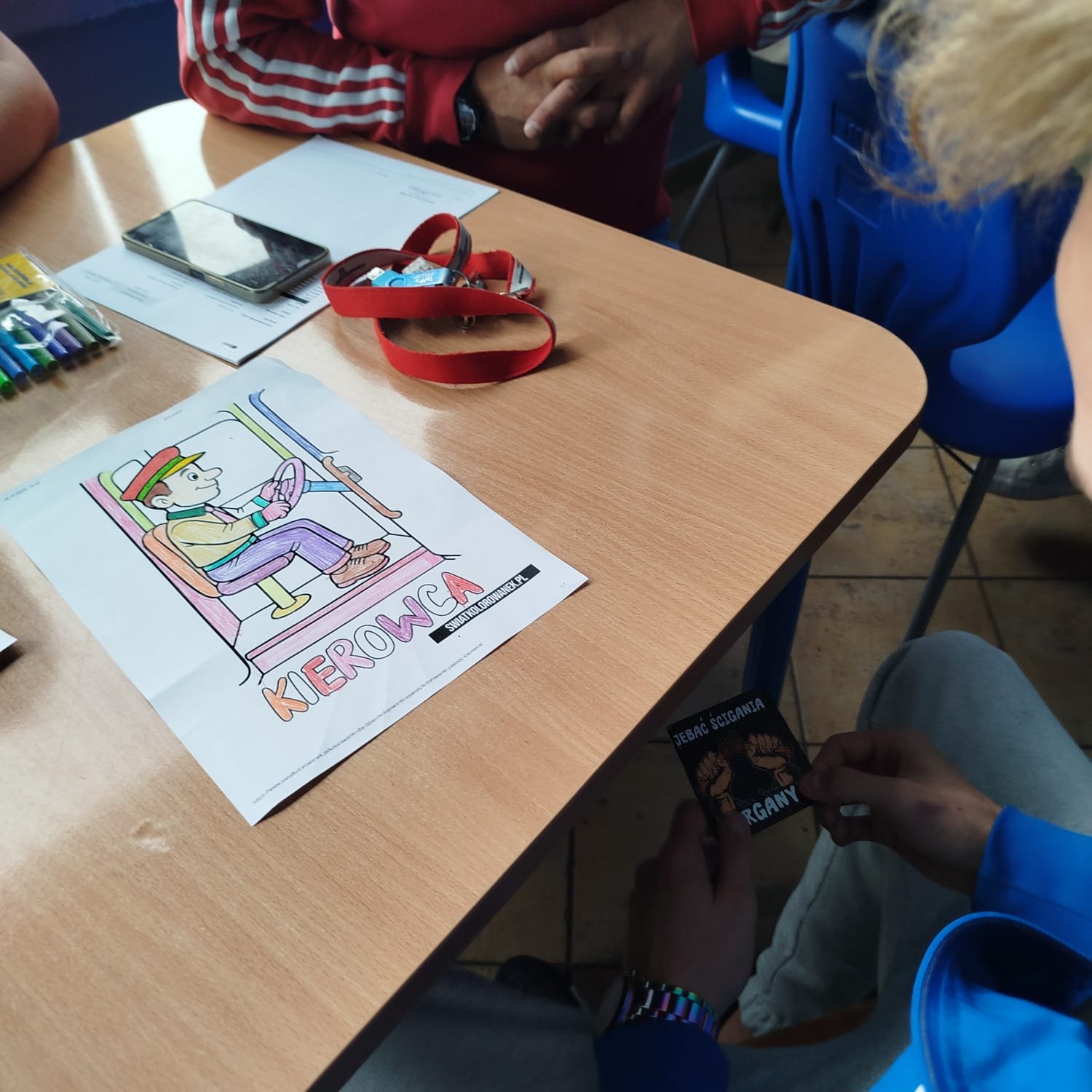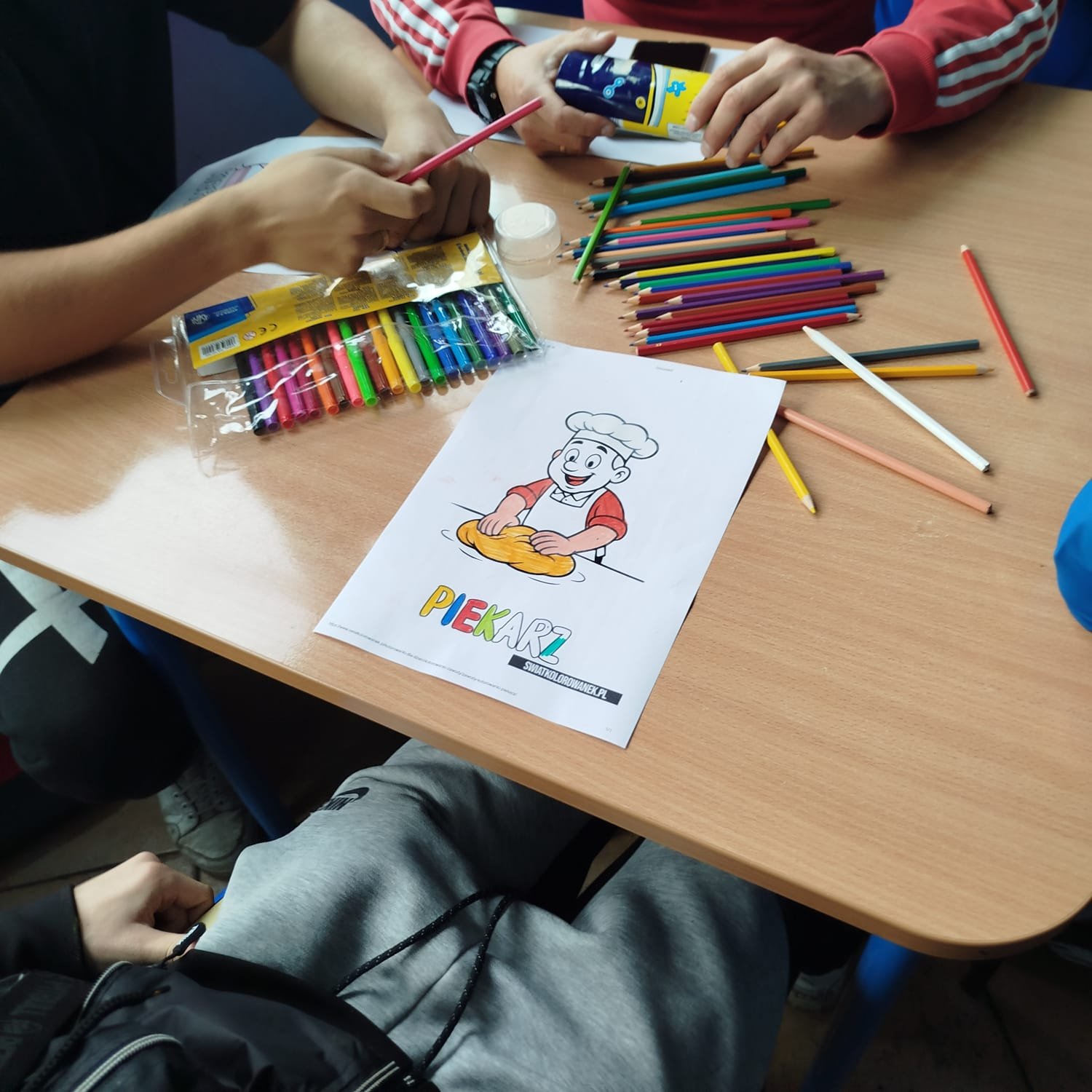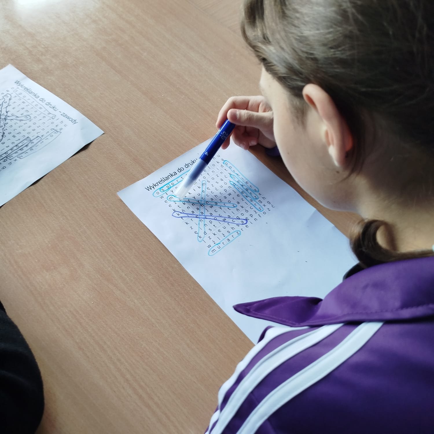 W trakcie warsztatów uczniowie wypełniali łamigłówki w postaci wykreślanek. Doskonałą zabawą były kolorowanki o zawodach. Swoją wiedzą sprawdzili w grze planszowej "W kolejce po zawody."