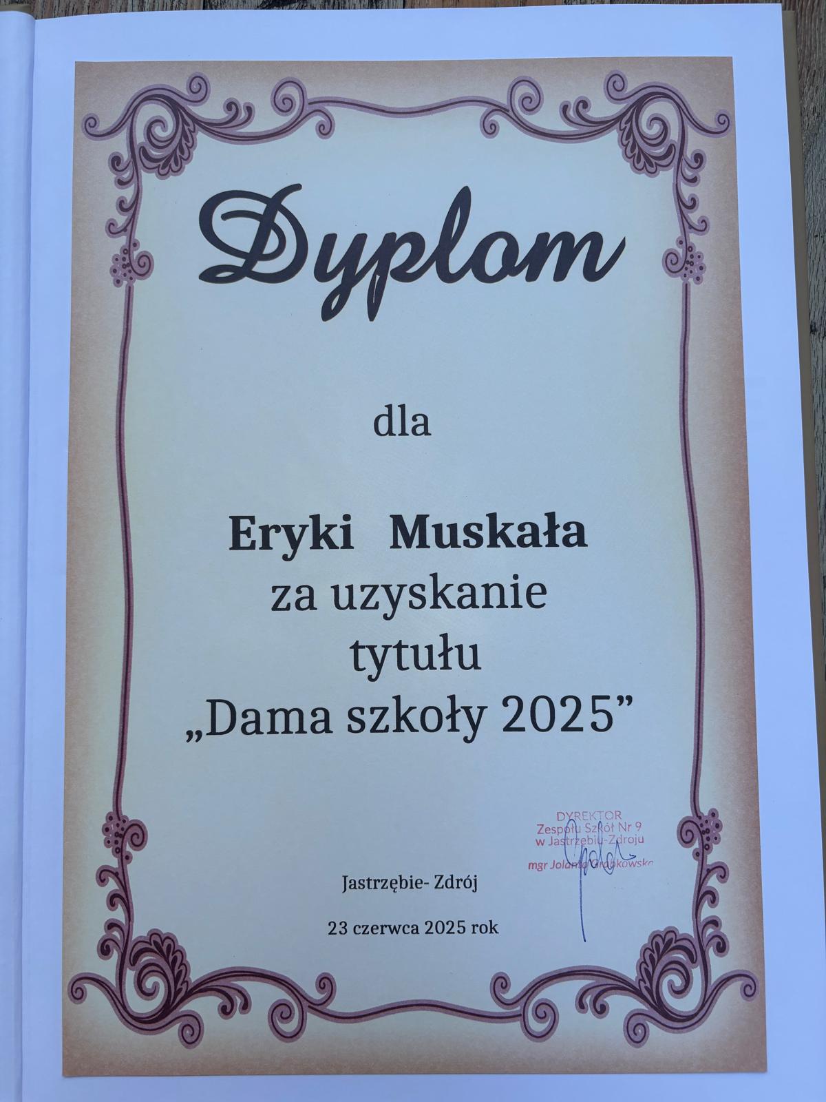 Największą ilość głosów i tytuł „Damy Szkoły” otrzymała Eryka Muskała z klasy Ib Szkoły Branżowej.