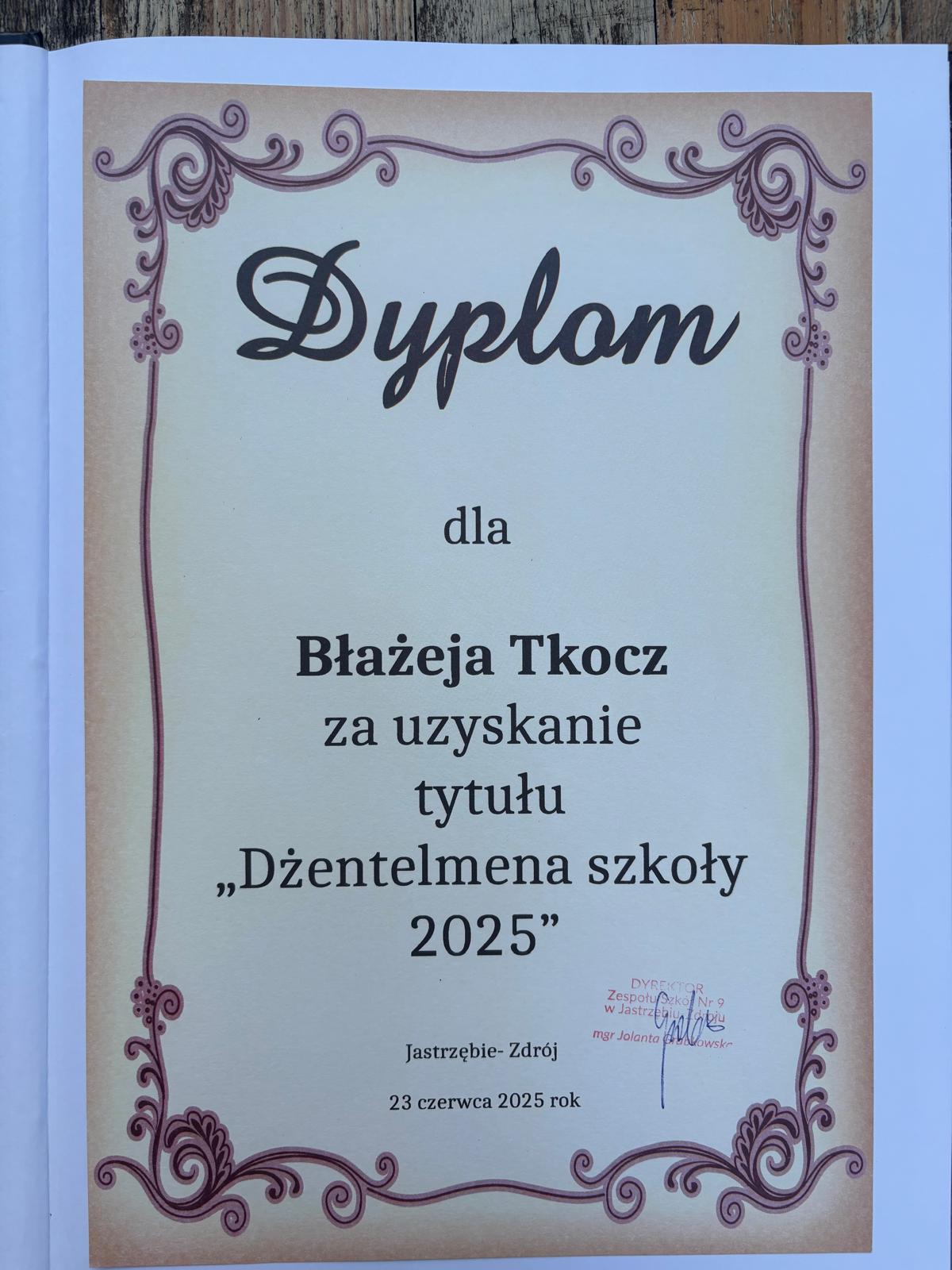 Tytuł „Dżentelmena szkoły” przypadł Błażejowi Tkocz, uczniowi klasy II b Szkoły Branżowej.