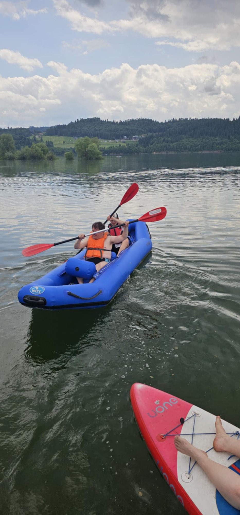 Drugiego dnia braliśmy udział w zajęciach wspinaczkowych pod opieką instruktora wspinaczki i ratownikach TOPR. Zajęcia odbyły się w pięknej okolicy Nowej Białej nad Dunajcem. Następnie udaliśmy się nad Jezioro Czorsztyńskie gdzie odbyły się zajęcia na SUPach oraz relaks po wszystkich wycieczkowych zmaganiach.