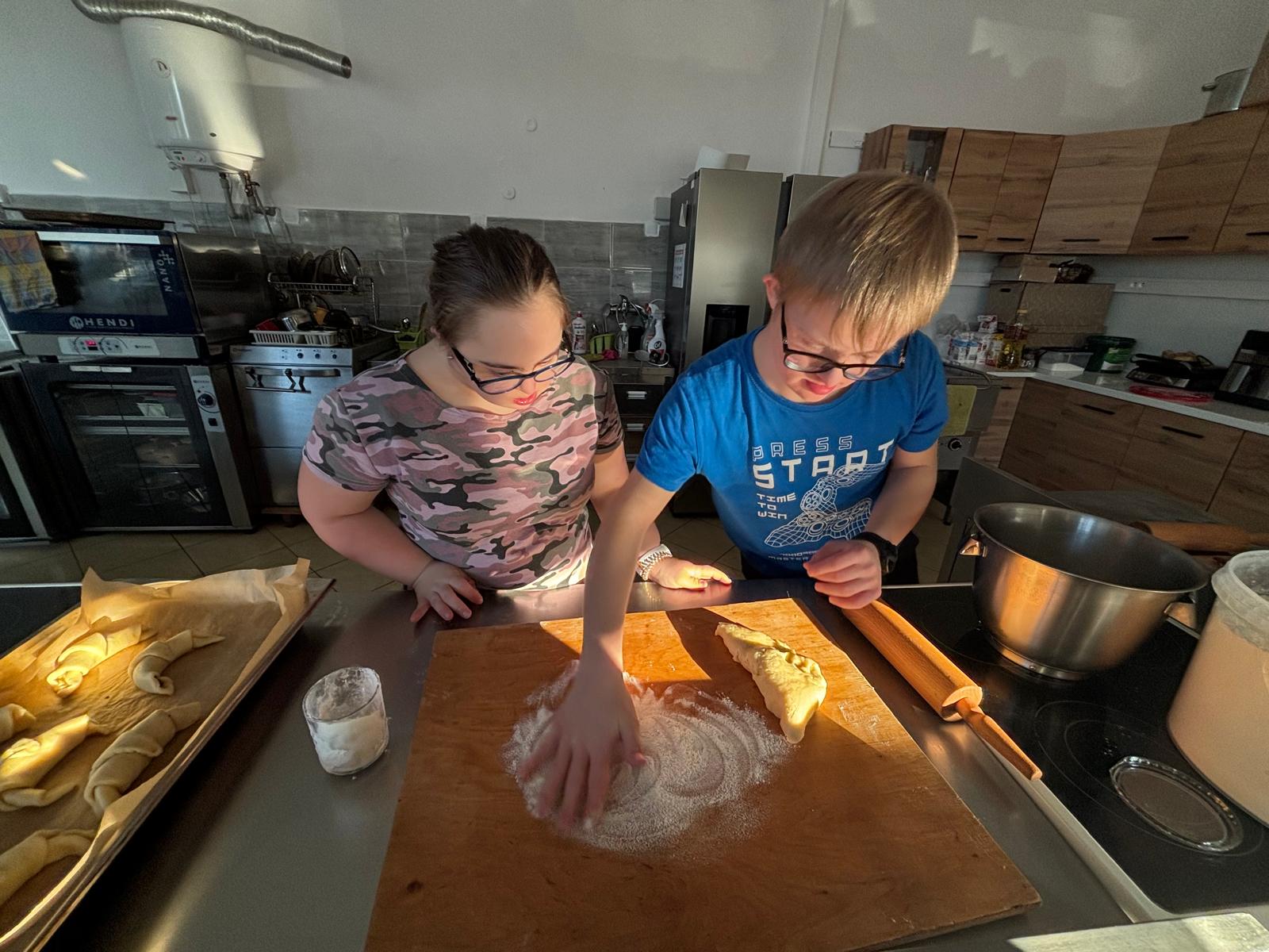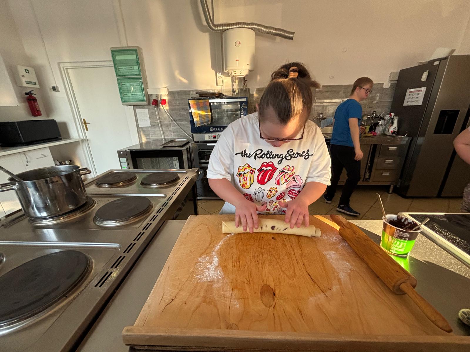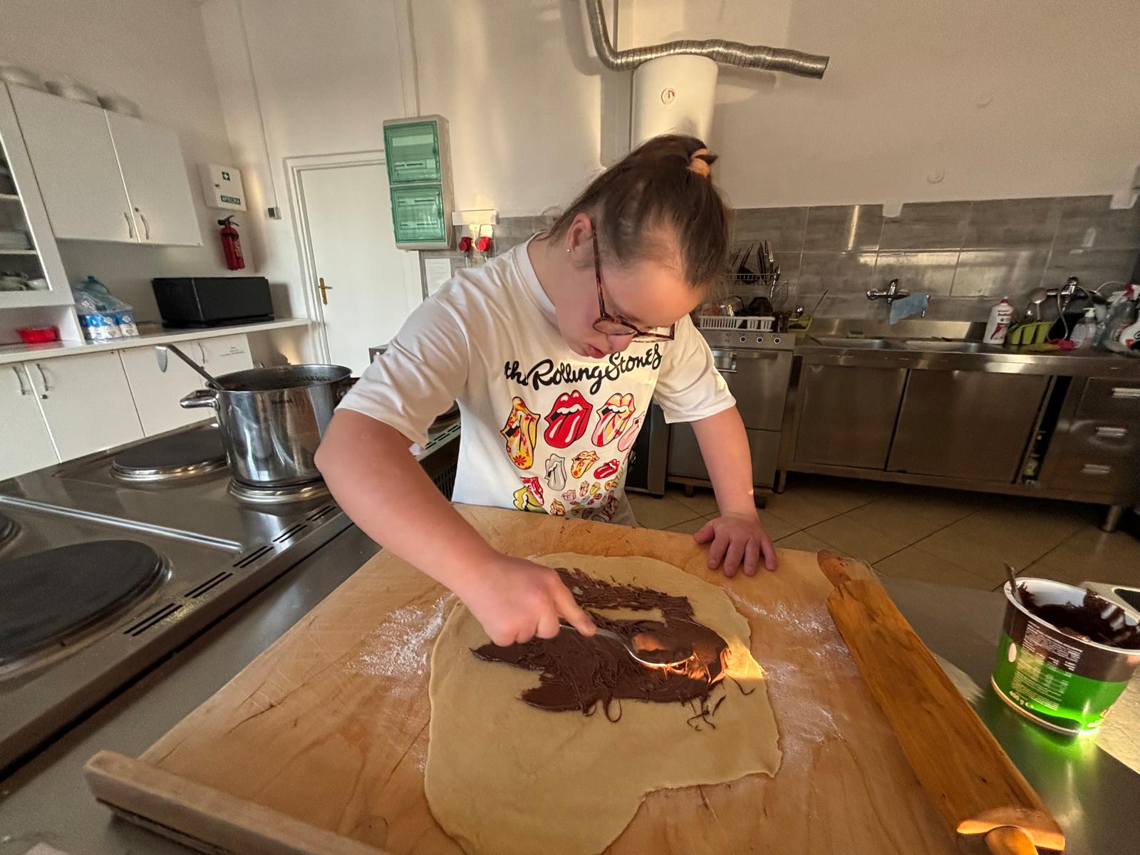 19 stycznia br. odbyły się kolejne cykliczne zajęcia kulinarne, w których wspólnie uczestniczyli uczniowie wraz z rodzicami. Podczas spotkania piekliśmy pyszne ślimaczki oraz rogaliki z kremem czekoladowym. Uczniowie byli bardzo zaangażowani w pracę, z ogromnym entuzjazmem ugniatali ciasto, formowali wypieki i z niecierpliwością czekali na efekty. W sali unosił się cudowny zapach, a powstrzymanie się od podjadania czekolady było nie lada wyzwaniem ? Efekt końcowy przerósł nasze oczekiwania — wyszły nam prawdziwie przepyszne smakołyki! Sami zobaczcie na zdjęciach, jak wspaniale się bawiliśmy i jakie cuda powstały podczas wspólnego pieczenia.