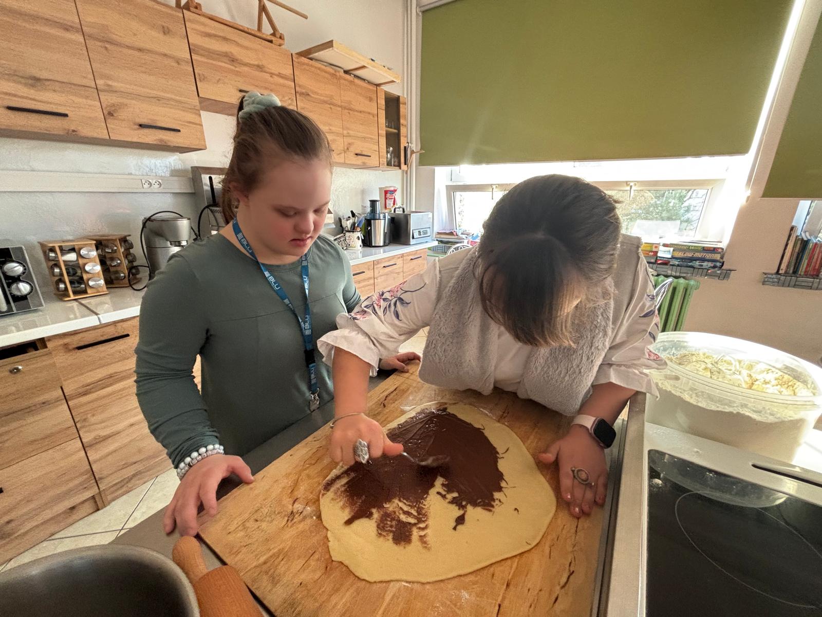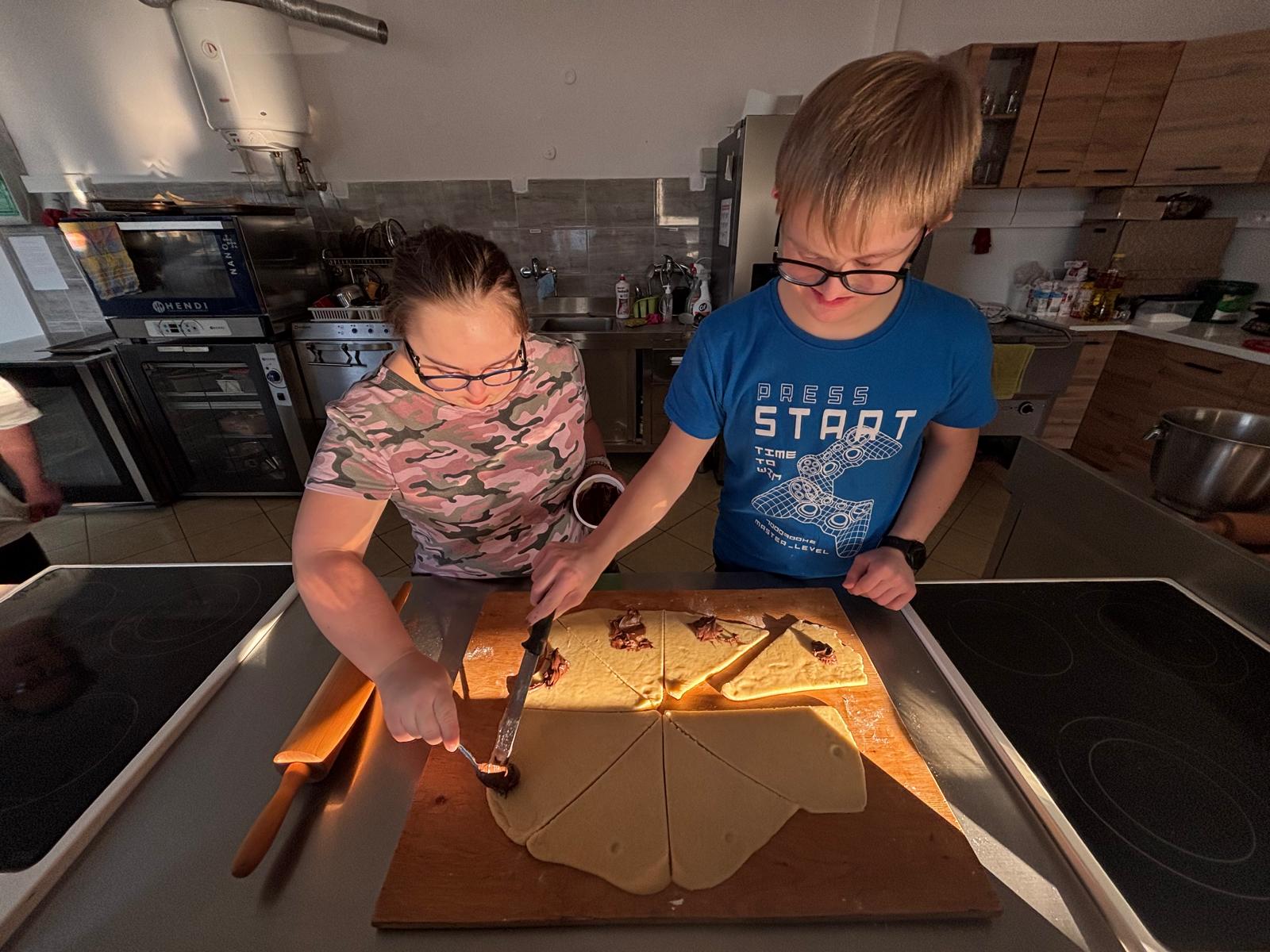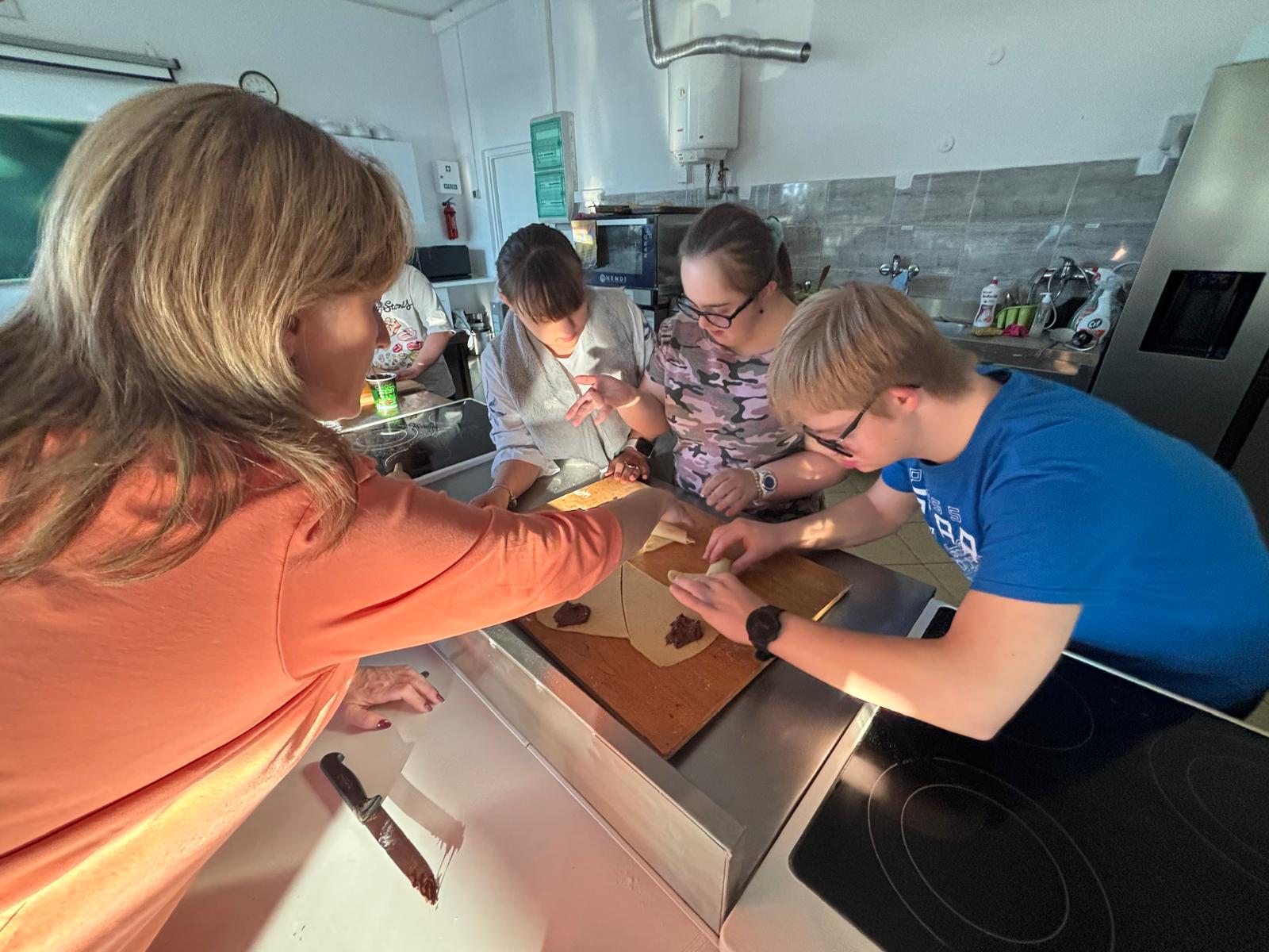 19 stycznia br. odbyły się kolejne cykliczne zajęcia kulinarne, w których wspólnie uczestniczyli uczniowie wraz z rodzicami. Podczas spotkania piekliśmy pyszne ślimaczki oraz rogaliki z kremem czekoladowym. Uczniowie byli bardzo zaangażowani w pracę, z ogromnym entuzjazmem ugniatali ciasto, formowali wypieki i z niecierpliwością czekali na efekty. W sali unosił się cudowny zapach, a powstrzymanie się od podjadania czekolady było nie lada wyzwaniem ? Efekt końcowy przerósł nasze oczekiwania — wyszły nam prawdziwie przepyszne smakołyki! Sami zobaczcie na zdjęciach, jak wspaniale się bawiliśmy i jakie cuda powstały podczas wspólnego pieczenia.