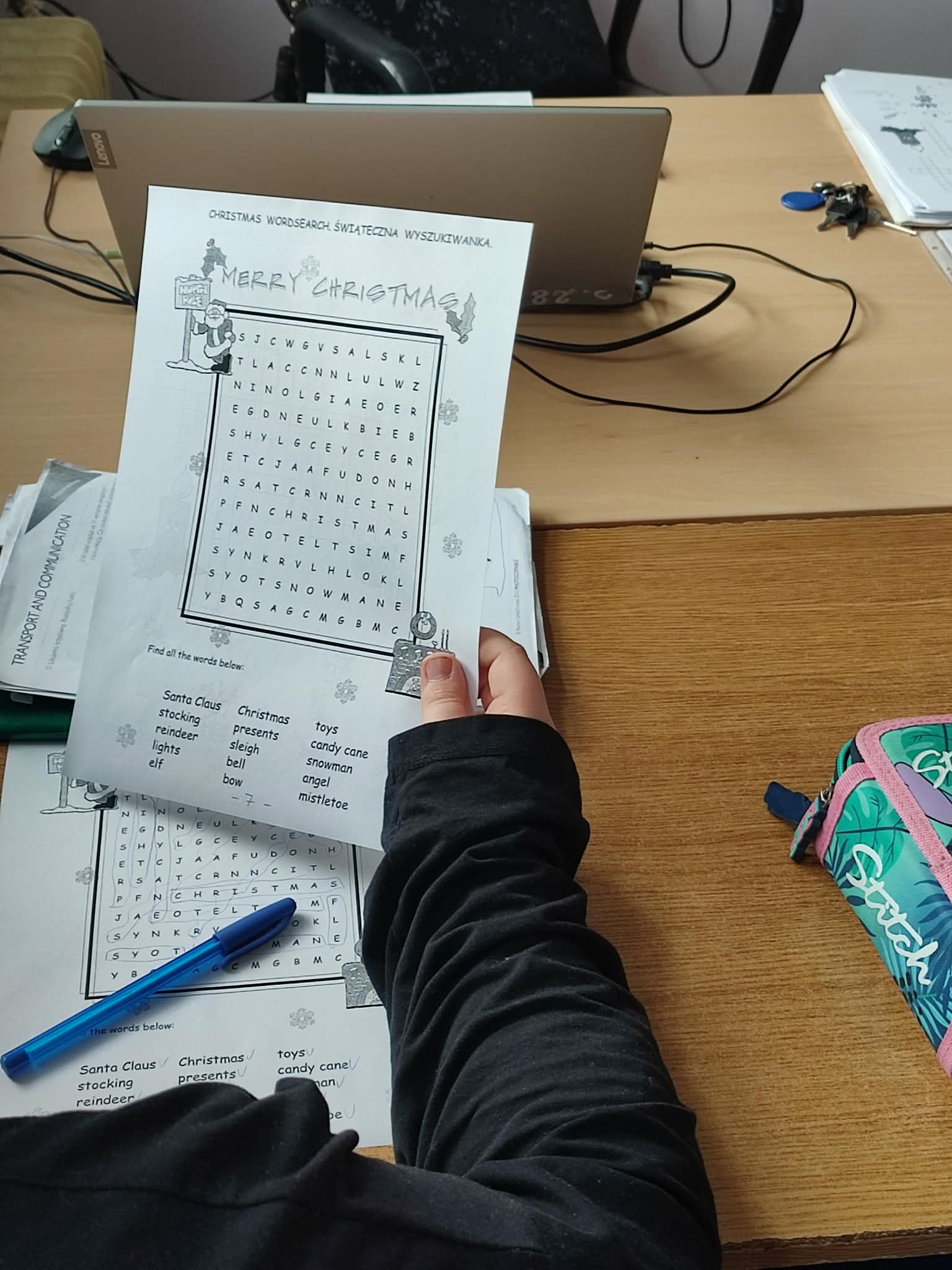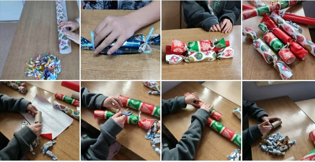 Po prezentacji odbyły się warsztaty tematyczno-plastyczne, podczas których uczniowie mogli zweryfikować swoją wiedzę rozwiązując różnorodne Christmas worksheets. Najmilszą i najsłodszą częścią warsztatów było przygotowanie tradycyjnych świątecznych Christmas crackers, czyli „strzelających” cukierków z niespodzianką w środku.