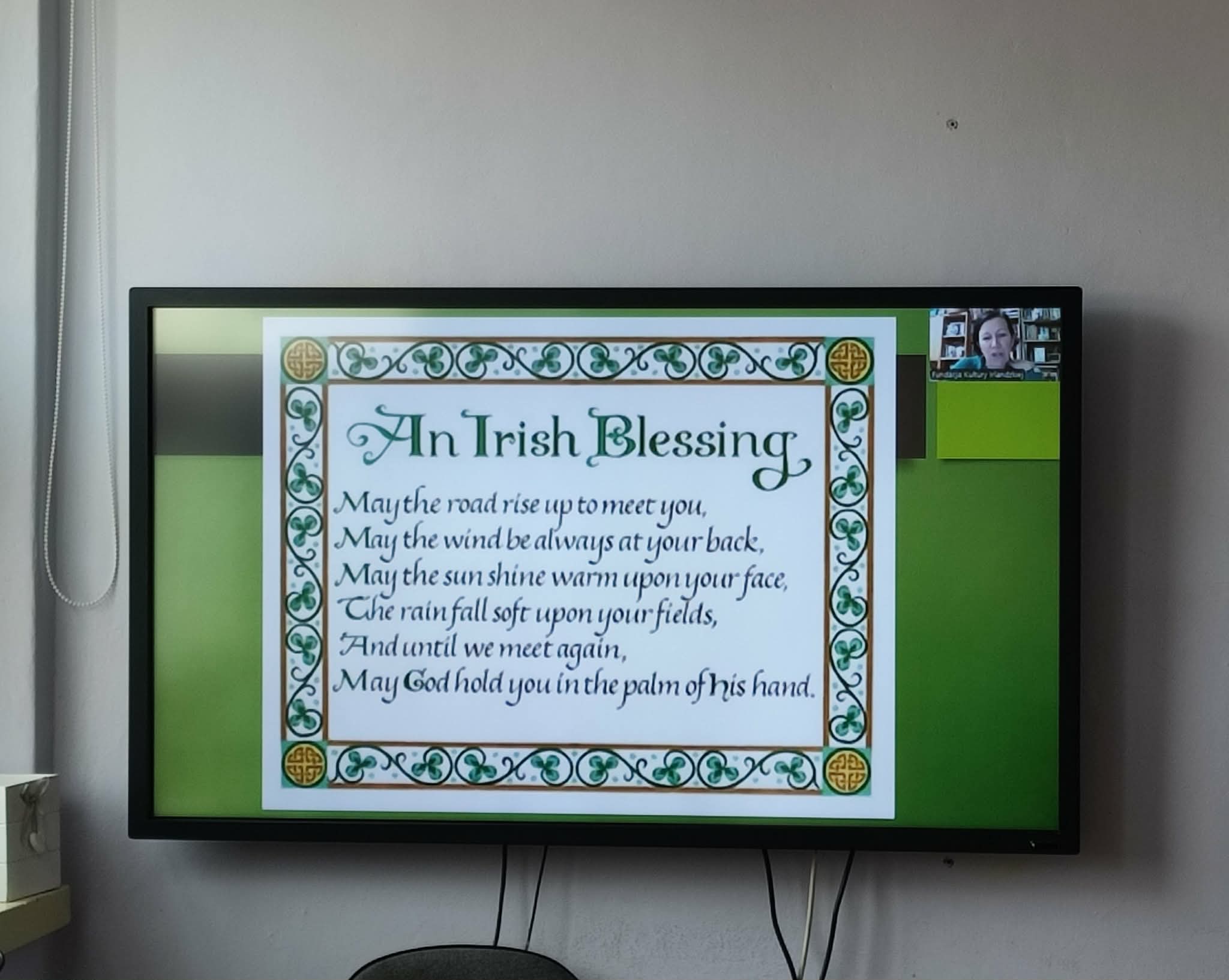 W ramach długoletniej współpracy z FKI w Poznaniu przy realizacji Projektu „Irlandia w szkole”, tradycją stały się interaktywne prezentacje multimedialne przygotowane i prowadzone przez p. Justynę Mazurek-Schramm szefową Fundacji Kultury Irlandzkiej przy Ambasadzie Irlandii w Poznaniu.